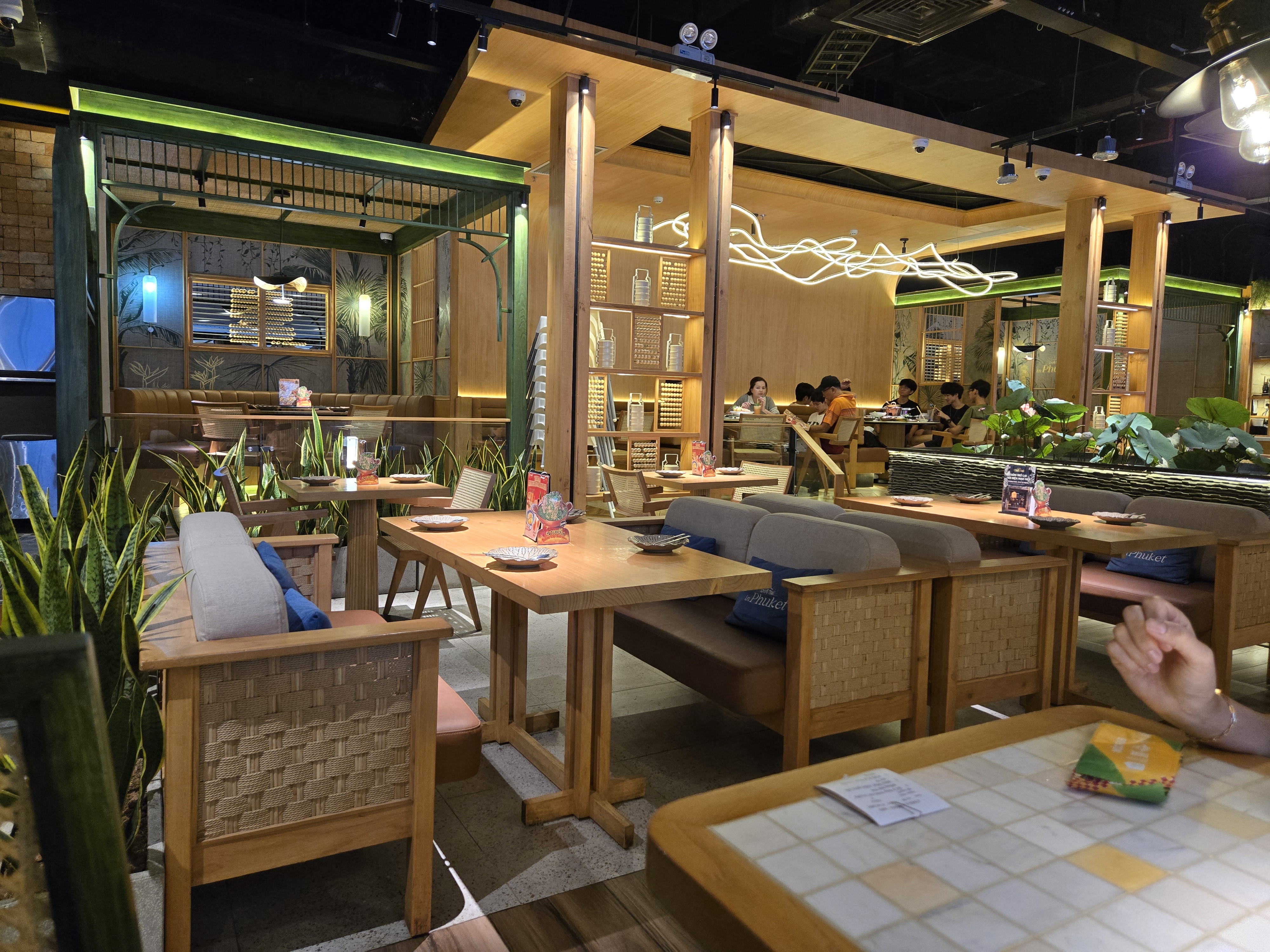 가게 내부는 테이블 간격이 넓어서 가족 단위 손님이나 친구들 모임에도 전혀 불편함이 없어요. 특히 따뜻한 조명과 대나무 인테리어 덕분에 동남아 현지의 아늑한 분위기가 물씬 납니다. 주말 저녁이라 사람이 제법 많았는데도 직원분들이 친절하고 서빙이 빨라서 만족스러웠어요. 개인적으로 마음에 들었던 점은 테이블마다 작은 화병이나 태국 소품들이 놓여 있어서 사진 찍기에도 너무 예쁘다는 거예요. 저는 창가 쪽 자리에 앉았는데 쇼핑몰 내부 뷰가 보여서 답답하지 않고 여유롭게 식사를 즐길 수 있었습니다.